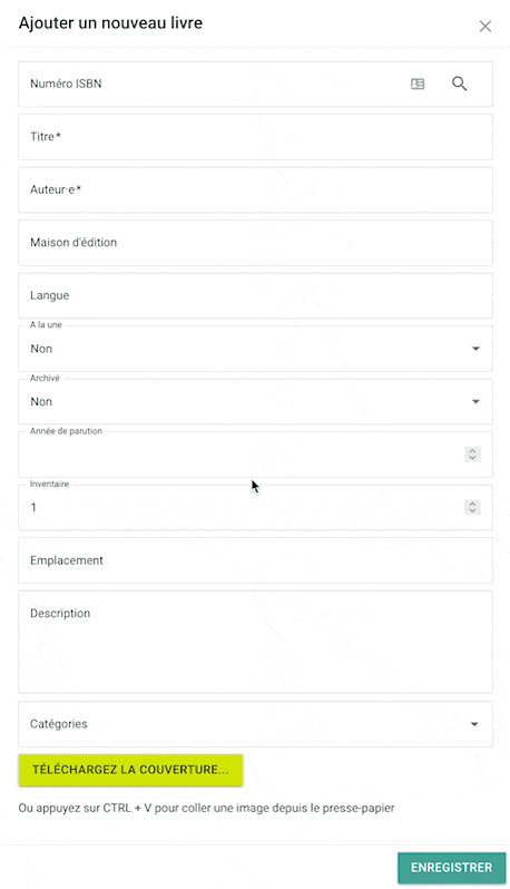 Entrez le numéro ISBN et La Bibli complète toutes les informations pour vous.